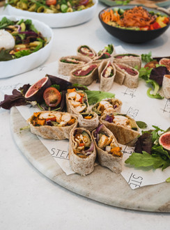 Wraps naar keuze (carpaccio, kip, zalm, falafel, burger of hummus)